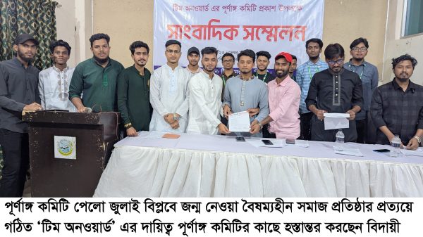 পূর্ণাঙ্গ কমিটি পেলো জুলাই বিপ্লবে জন্ম নেওয়া বৈষম্যহীন সমাজ প্রতিষ্ঠার প্রত্যয়ে গঠিত ‘টিম অনওয়ার্ড’।