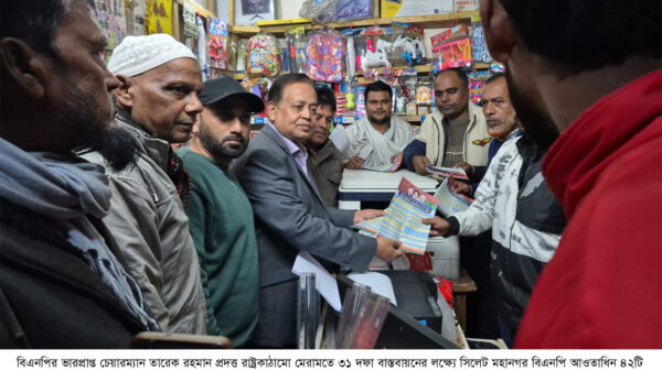 সোমবার (১৩ জানুয়ারি) বিকেলে বিএনপির ভারপ্রাপ্ত চেয়ারম্যান তারেক রহমান প্রদত্ত রাষ্ট্রকাঠামো মেরামতে ৩১ দফা বাস্তবায়নের লক্ষ্যে সিলেট মহানগর বিএনপি আওতাধিন ৪২টি ওয়ার্ডে প্রচারপত্র বিলিনের অংশ হিসেবে ৩০ নম্বর ওয়ার্ডের চকেরবাজার, শিববাড়ি বাজার, জৈনপুর, গালিমপুর, চান্দাই, নজরপুর, পশ্চিমপাড়া, টিয়ারগাও, মাঝপাড়া, গালিমপুর এলাকায় প্রচারপত্র বিলিন কালে উপরোক্ত কথাগুলো বলেন।