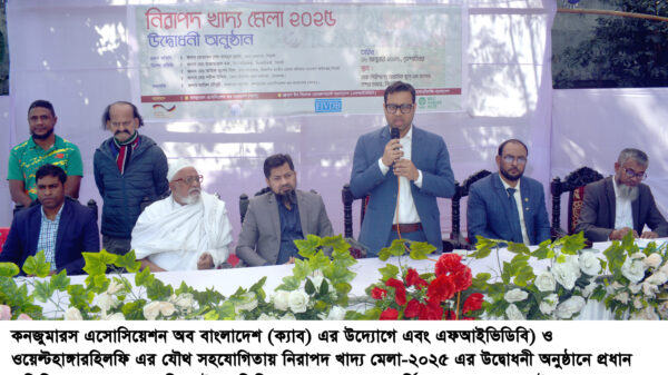কনজুমারস এসোসিয়েশন অব বাংলাদেশ (ক্যাব) এর উদ্যোগে এবং ফ্রেন্ডস ইন ভিলেজ ডেভেলপমেন্ট বাংলাদেশ (এফআইভিডিবি) ও ওয়েল্টহাঙ্গারহিলফি-বাংলাদেশ এর যৌথ সহযোগিতায় নিরাপদ খাদ্য মেলা-২০২৫ এর উদ্বোধনী অনুষ্ঠানে প্রধান অতিথির বক্তব্যে তিনি এসব কথা বলেন।