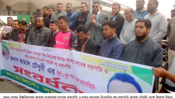 তিনি শনিবার (২৫ জানুয়ারি) সিলেট মদন মোহন বিশ্ববিদ্যালয় কলেজ ছাত্রদলের সাবেক সভাপতি ও লন্ডন মহনগর বিএনপির সহ-সভাপতি কামাল চৌধুরী দীর্ঘ ২৪ বছর পর দেশে ফিরলে সিলেট এমএজি ওসমানী বিমান বন্দরে নেত্কর্মীরা স্বাগত জানালে তিনি উপরোক্ত কথাগুলো বলেন।