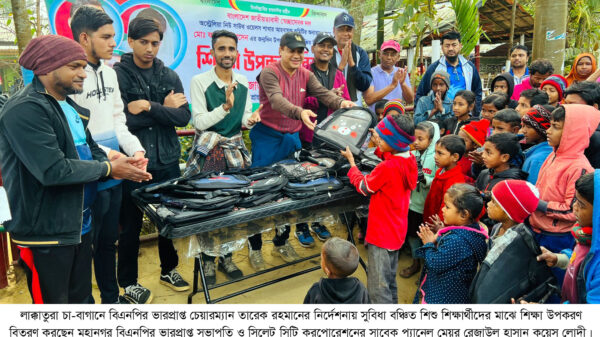 তিনি মঙ্গলবার (২৮ জানুয়ারি) সকালে সিলেট আন্তর্জাতিক ক্রিকেট স্টেডিয়াম সংলগ্ন লাক্কাতুরা চা-বাগানের ভেতরে পাশে বিএনপির ভারপ্রাপ্ত চেয়ারম্যান তারেক রহমানের নির্দেশনায় স্বেচ্ছাসেবক দল অস্ট্রেলিয়া নিউ সাউথ ওয়েলস শাখার আহবায়ক কমিটির অন্যতম সদস্য মো. ফারদিন হোসেনের পক্ষ থেকে চা বাগানের সুবিধাবঞ্চিত শিশু শিক্ষার্থীদের মাঝে শিক্ষা উপকরণ বিতরণ কালে প্রধান অতিথির বক্তব্যে উপরোক্ত কথাগুলো বলেন।