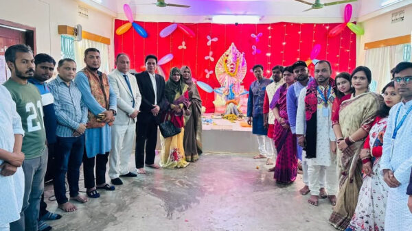 পূজা পরিদর্শন ও শুভেচ্ছা অনুষ্ঠানটি আয়োজন করা হয় কলেজের মন্ডপে।