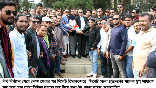 দীর্ঘ নির্বাসন শেষে দেশে ফিরেছেন সিলেট জেলা ছাত্রদলের সাবেক যুগ্ম সাধারণ সম্পাদক ও দুঃশাসনবিরোধী আন্দোলনের সৈনিক আবু বক্কর সিদ্দিক বাবু।