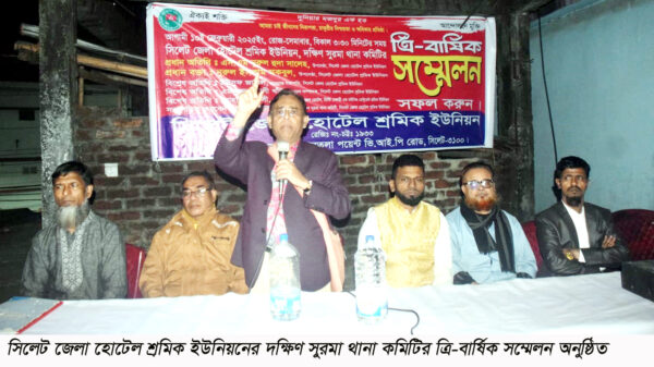 সিলেট জেলা হোটেল শ্রমিক ইউনিয়নের দক্ষিণ সুরমা থানা কমিটির ত্রি-বার্ষিক সম্মেলন অনুষ্ঠিত হয়েছে।