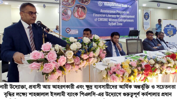নারী উদ্যোক্তা, প্রবাসী আয় আহরণকারী এবং ক্ষুদ্র ব্যবসায়ীদের আর্থিক অন্তর্ভুক্তি ও সচেতনতা বৃদ্ধির লক্ষ্যে শাহজালাল ইসলামী ব্যাংক পিএলসি-এর উদ্যোগে সিলেট শাখায় দিনব্যাপী দুটি গুরুত্বপূর্ণ কর্মশালা অনুষ্ঠিত হয়।