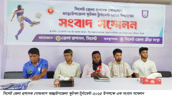 সিলেট জেলা প্রশাসক গোল্ডকাপ আন্তঃউপজেলা ফুটবল টুর্নামেন্ট-২০২৫ উপলক্ষে এক সংবাদ সম্মেলন অনুষ্ঠিত হয়েছে।