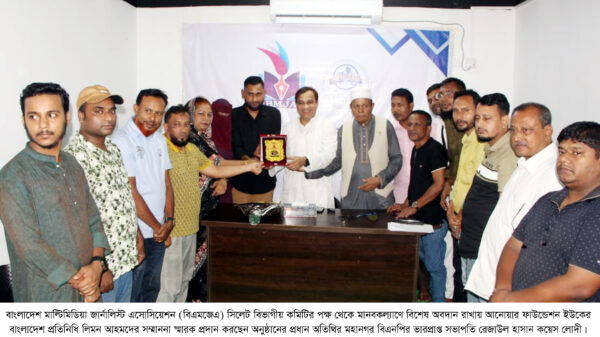 তিনি সোমবার (১৮ আগস্ট) বাংলাদেশ মাল্টিমিডিয়া জার্নালিস্ট এসোসিয়েশন (বিএমজেএ) সিলেট বিভাগীয় কমিটির পক্ষ থেকে এসোসিয়েশনের জিন্দাবাজারস্থ কার্যালয়ে মানবকল্যাণে বিশেষ অবদান রাখায় আনোয়ার ফাউন্ডেশন ইউকের বাংলাদেশ প্রতিনিধি লিমন আহমদের সম্মাননা অনুষ্ঠানে প্রধান অতিথির বক্তব্যে উপরোক্ত কথাগুলো বলেন।
