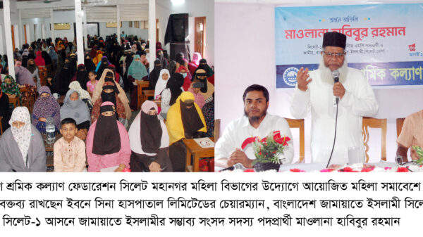 শনিবার (৩০ আগস্ট) বিকেলে বাংলাদেশ শ্রমিক কল্যাণ ফেডারেশন সিলেট মহানগর মহিলা বিভাগের উদ্যোগে নগরীর মিরাবাজারস্থ শাহজালাল জামেয়া ইসলামী স্কুল এন্ড কলেজে অনুষ্ঠিত মহিলা সমাবেশে প্রধান অতিথির বক্তব্যে তিনি এসব কথা বলেন।