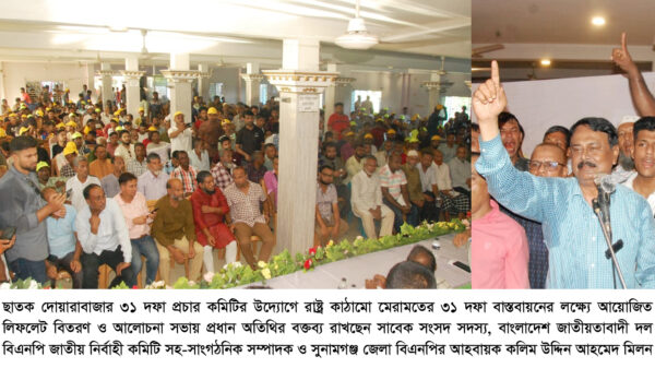 » ছাতক দোয়ারাবাজার ৩১ দফা প্রচার কমিটির উদ্যোগে লিফলেট বিতরণ ও সমাবেশ