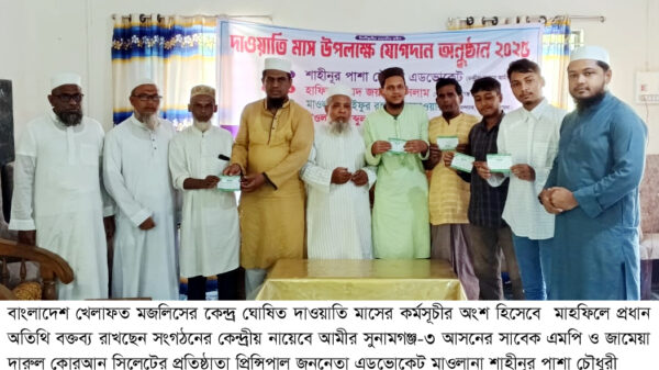 বিশেষ অতিথি সুনামগঞ্জ জেলা সাধারণ সম্পাদক হাফিজ জয়নুল ইসলাম, বাংলাদেশ খেলাফত মজলিস নেতা প্রিন্সিপাল মাওলানা নুরুজ্জামান, মাওলানা রিয়াজুদ্দিন রাজু, বাংলাদেশ খেলাফত যুব মজলিস নেতা মাওলানা তারেক আহমদ প্রমুখ।