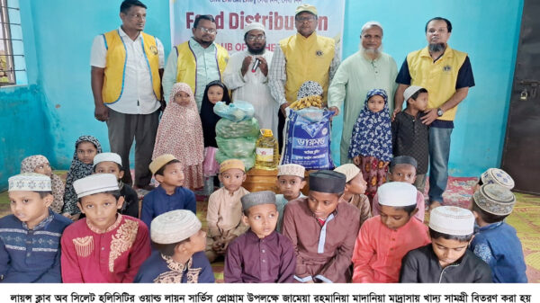 লায়ন্স ক্লাব অব সিলেট হলিসিটির ওয়াল্ড লায়ন সার্ভিস প্রোগ্রাম উপলক্ষে সোমবার (১৩ অক্টোবর) সকালে নগরীর সোবহানীঘাটস্থ জামেয়া রহমানিয়া মাদানিয়া মাদ্রাসায় খাদ্য সামগ্রী বিতরণ করা হয়েছে। এছাড়াও বিভিন্ন ধনের ফলমূল বিতরণ করা হয়।