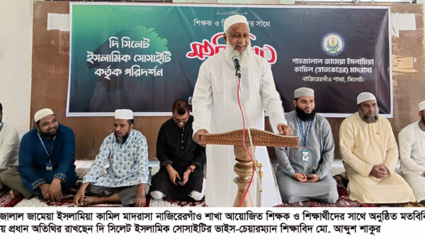দি সিলেট ইসলামিক সোসাইটির ভাইস-চেয়ারম্যান শিক্ষাবিদ উপাধ্যক্ষ মো. আব্দুশ শাকুর বলেছেন, যুগোপযোগী জ্ঞানার্জন ছাড়া এগিয়ে যাওয়া সম্ভব নয়। জ্ঞান-বিজ্ঞানে শ্রেষ্ঠত্ব অর্জনের লক্ষ্যে মাদরাসার শিক্ষার্থীদের চেষ্টা জোরদার রাখতে হবে। নৈতিক অবক্ষয় রোধে প্রযুক্তির অপব্যবহার থেকে শিক্ষার্থীদের দূরে থাকতে হবে। কেননা এই কারণে অনেক শিক্ষার্থীর পড়াশুনা, চলাফেরা কিংবা স্বাভাবিক জীবনযাত্রা ব্যাহত হচ্ছে।