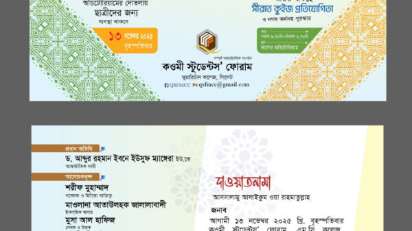 সকল শিক্ষার্থী ও আগ্রহী ভাই-বোনদের যথাসময়ে উপস্থিত থাকার অনুরোধ জানিয়েছেন কওমী স্টুডেন্টস’ ফোরামের সদস্যসচিব তোফায়েল আহমদ।