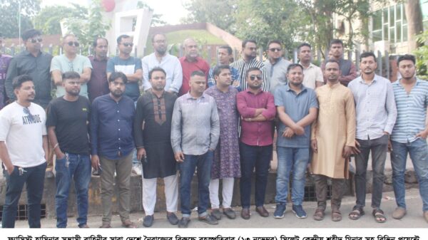 সারাদেশে স্বৈরাচারী ফ্যাসিস্ট আওয়ামী শেখ হাসিনা ও তার দলের নেতাকর্মী সন্ত্রাসী বাহিনীর দ্বারা নৈরাজ্যের প্রতিবাদে সিলেটে অবস্থান কর্মসূচী পালন করেছে বিএনপির অঙ্গসংগঠনের নেতাকর্মীরা।