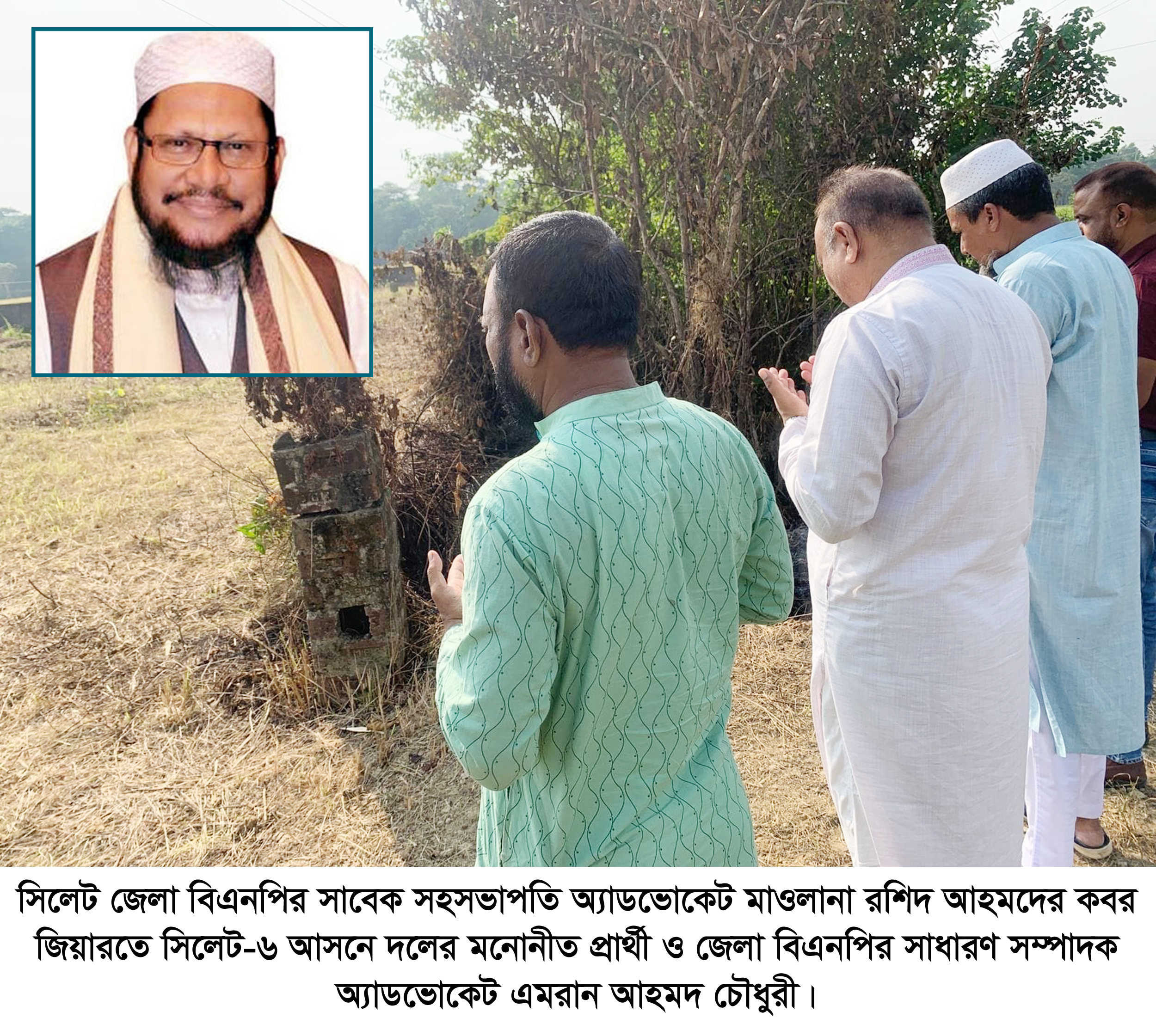 এদিকে, বরায়া মাদরাসায় মতবিনিময় শেষে সিলেট জেলা বিএনপির সাবেক সহসভাপতি অ্যাডভোকেট মাওলানা রশিদ আহমদের কবর জিয়ারত করেন, সিলেট-৬ আসনে ধানের শীষের কান্ডারি এমরান আহমদ চৌধুরী।