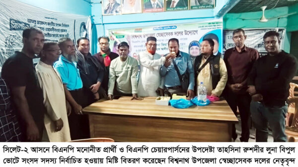 » তাহসিনা রুশদীর লুনার বিজয়ে বিশ্বনাথে স্বেচ্ছাসেবক দলের মিষ্টি বিতরণ