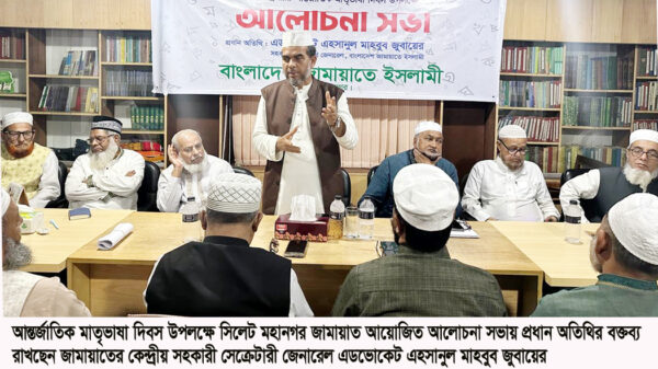 তিনি শনিবার মহান ২১শে ফেব্রুয়ারী আন্তর্জাতিক মাতৃভাষা দিবস উপলক্ষে সিলেট মহানগর জামায়াত আয়োজিত আলোচনা সভা ও দোয়া মাহফিলে প্রধান অতিথির বক্তব্যে উপরোক্ত কথা বলেন।