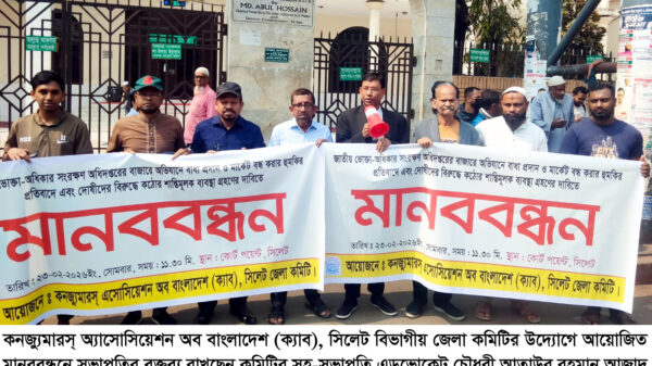 » সিলেটে ক্যাব-এর মানববন্ধন; বাজার অভিযানে বাধা প্রদানকারীদের শাস্তির দাবি