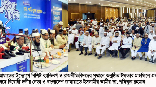 জামায়াতের কেন্দ্রীয় কর্মপরিষদ সদস্য ও সিলেট মহানগর আমীর মুহাম্মদ ফখরুল ইসলামের সভাপতিত্বে, মহানগর নায়েবে আমীর ড. নুরুল ইসলাম বাবুল ও সেক্রেটারী মোহাম্মদ শাহজাহান আলীর যৌথ পরিচালনায় বিভিন্ন শ্রেণী পেশার মানুষের উপস্থিতিতে অনুষ্ঠিত ইফতার মাহফিলটি একটি মিলন মেলায় পরিণত হয়।