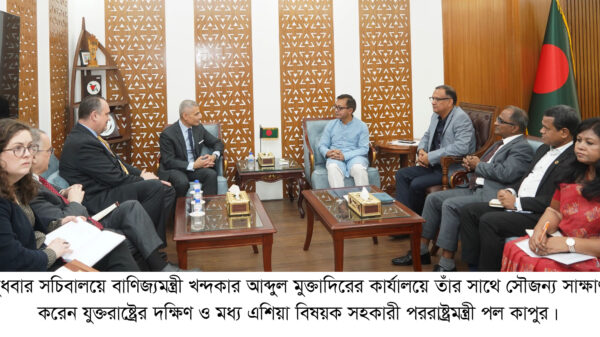 বুধবার (৪ মার্চ) সচিবালয়ে বাণিজ্যমন্ত্রীর অফিস কক্ষে যুক্তরাষ্ট্রের দক্ষিণ ও মধ্য এশিয়া বিষয়ক সহকারী পররাষ্ট্রমন্ত্রী পল কাপুরের সঙ্গে সৌজন্য সাক্ষাৎ শেষে সাংবাদিকদের তিনি এসব কথা বলেন।