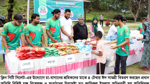 বুধবার (১৮ মার্চ) নগরীর শাহী ঈদগাহ দলদলী চা-বাগানে বিকেলে পবিত্র ঈদুল ফিতর উপলক্ষে ‘ঈদ নায় এখলা এখলা, ঈদ আনন্দ হখলে মিল্লা’ এই প্রতিপাদ্যকে সামনে রেখে ক্লিন সিটি সিলেট-এর উদ্যোগে চা-বাগানের শ্রমিকদের মাঝে ৪ টেখায় ঈদ সামগ্রী বিতরণ অনুষ্ঠানে প্রধান অতিথির বক্তব্যে উপরোক্ত কথাগুলো বলেন।