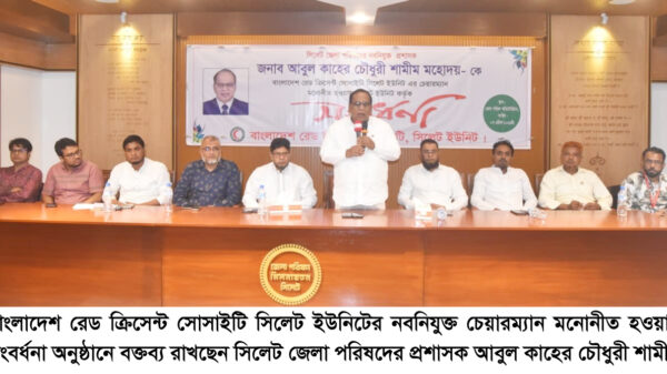 বাংলাদেশ রেড ক্রিসেন্ট সোসাইটি, সিলেট ইউনিটের নবনিযুক্ত চেয়ারম্যান ও সিলেট জেলা পরিষদের প্রশাসক আবুল কাহের চৌধুরী শামীমকে সংবর্ধনা প্রদান করা হয়েছে।