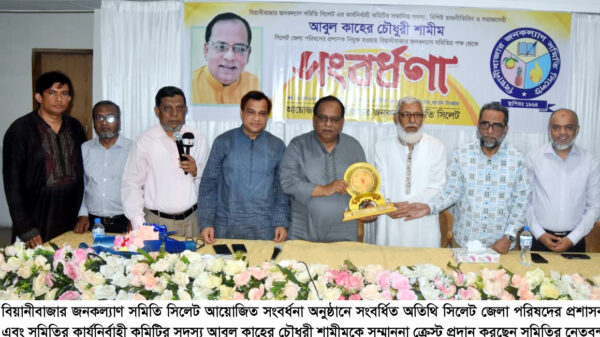 - বিয়ানীবাজার জনকল্যাণ সমিতি সিলেটের উদ্যোগে সংবর্ধনা