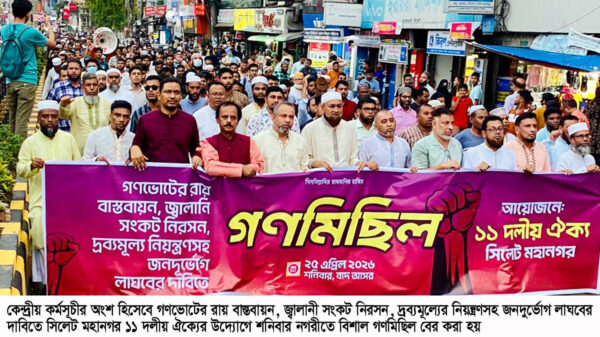 - সিলেট মহানগর ১১ দলীয় ঐক্যের গণমিছিল ও সমাবেশ