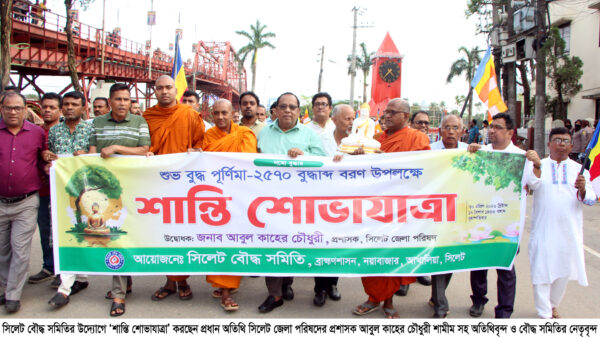 বৃহস্পতিবার (৩০ এপ্রিল) বিকাল ৪টায় শুভ বুদ্ধ পূর্ণিমা-২৫৭০ বুদ্ধাব্দ বরণ উপলক্ষে সিলেট বৌদ্ধ সমিতির উদ্যোগে ‘শান্তি শোভাযাত্রার’ শুভ উদ্বোধনকালে প্রধান অতিথির বক্তব্যে উপরোক্ত কথাগুলো।